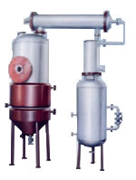 1.ZN-C型是加长筒体分离段;2.为克服浓缩罐顶二次蒸汽在未进入冷凝器前被冷凝而返回罐内的缺点。本设备将冷凝器改为斜卧式;3.为提高设备的生产能力,本设备将浓缩罐夹套的加热面积,冷凝、冷却器的面积均有不同程度加大; 4.为防止浓缩罐出液管的死角,本产品中采用不锈钢球形考克;