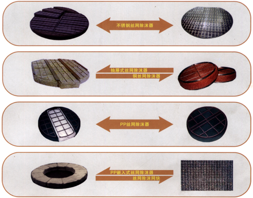 3、根据工艺要求和实践使用情况可以通过调准丝网的直径来调准除沫器的技术参数(丝径调准范围:园丝一般在0.08MM-0.275MM、扁丝一般在0.1MM*03MM*0.2MM80.4MM)